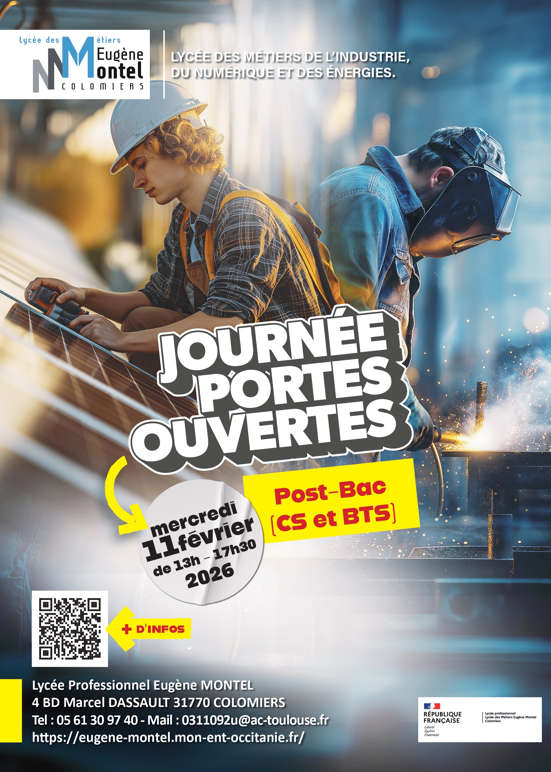 Les Journées Portes Ouvertes Post 3ème seront organisées au lycée le samedi 11 avril 2026 de 9h à 12h30 |